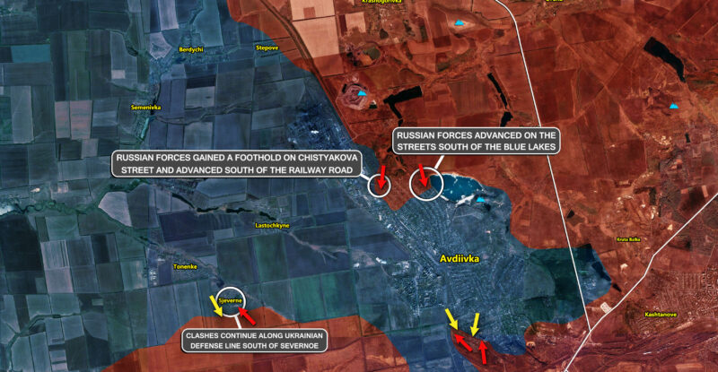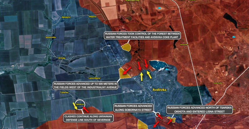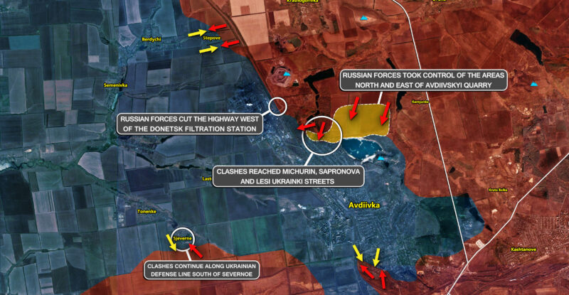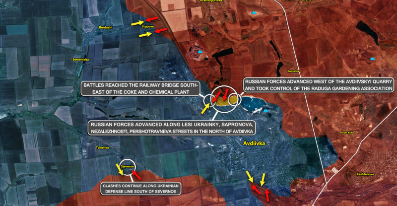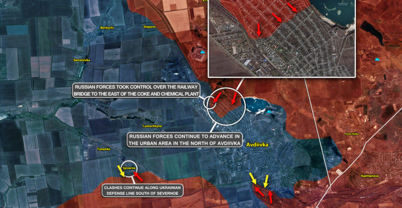 Battles reached the railway bridge south-east of the Coke and Chemical Plant; Russian forces advanced west of the Avdiivskyi Quarry…
