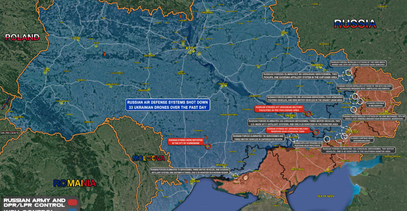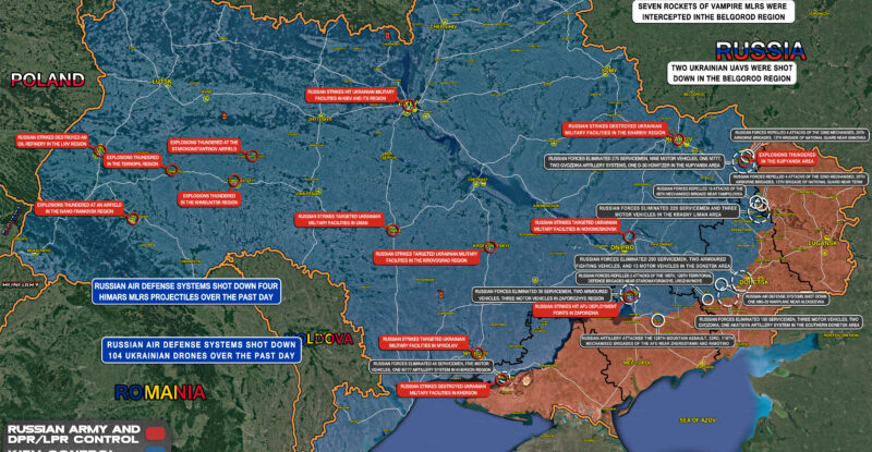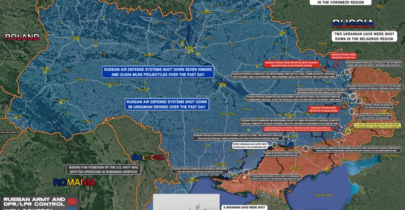 Russian strikes hit Ukrainian military facilities in the Pavlograd area; Russian strikes hit Ukrainian military reserves near Pokrovsk town; Russian…
