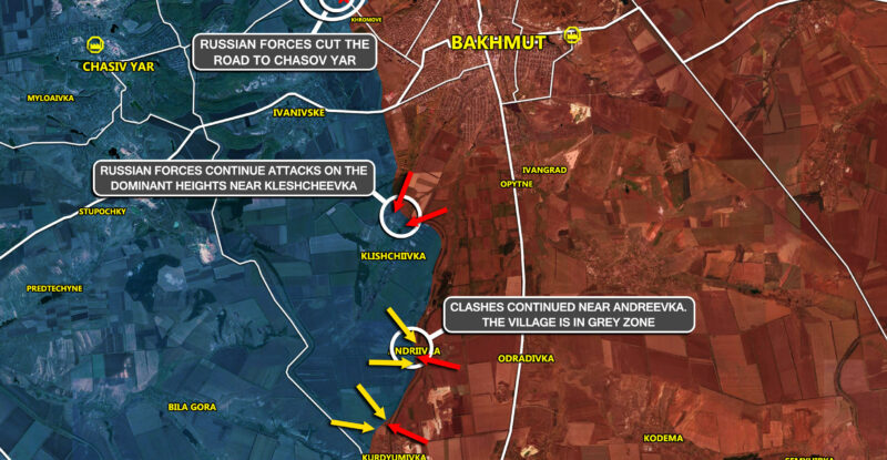 Russian forces cut the road to Chasov Yar; Russian forces are expanding the zone of their control near Bogdanovka; Russian…