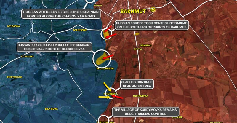 Russian forces took control of the dominant height 234.7 north of Klescheevka; Russian forces took control of dachas on the…