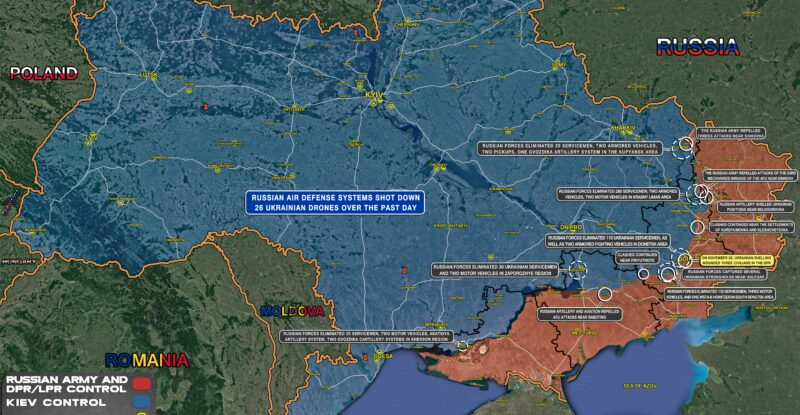 On November 26, Ukrainian shelling wounded three civilians in the DPR; The Russian Army repelled threes attacks near Sinkovka; The…
