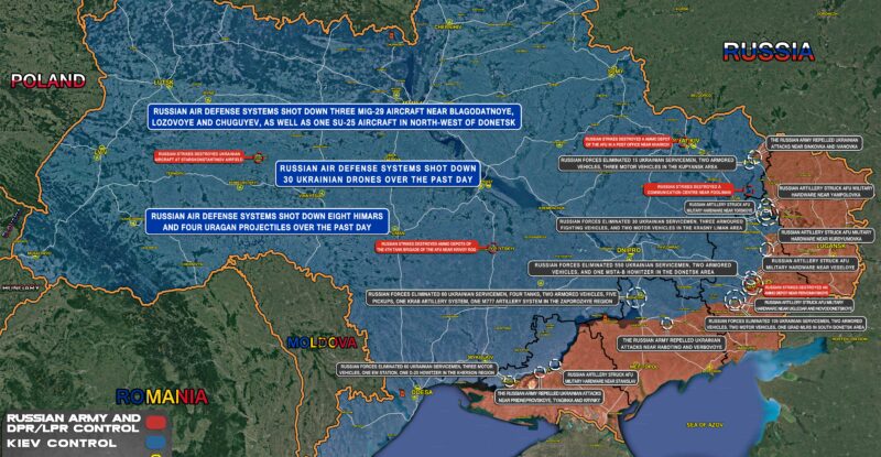 Russian strikes destroyed Ukrainian Aircraft at Starokonstantinov airfield; Russian strikes destroyed a communication centre near Podliman; Russian strikes destroyed ammo…