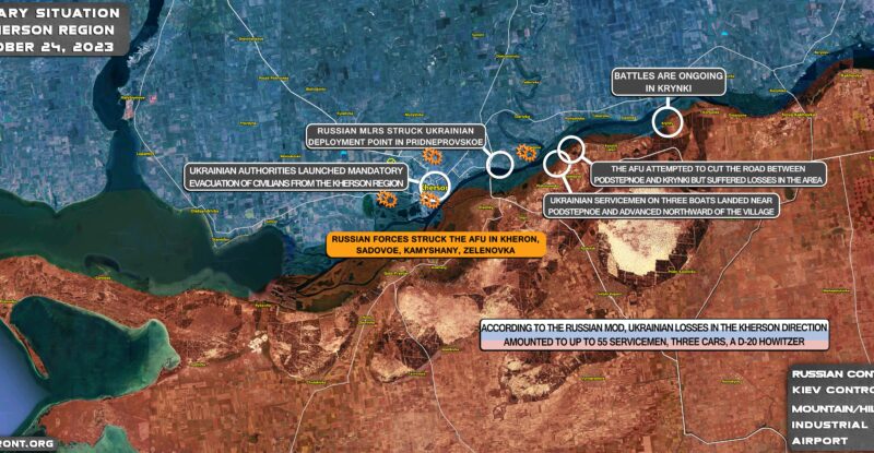 Ukrainian servicemen on three boats landed near Podstepnoe and advanced northward of the village; The AFU attempted to cut the…