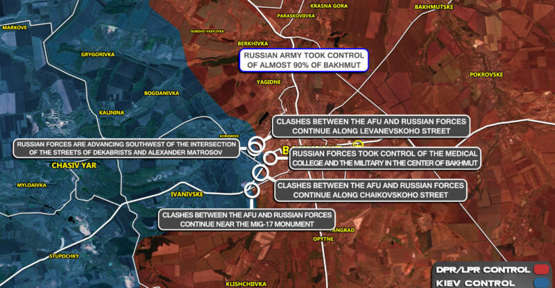 Russian forces took control of the medical college and the military in the center of Bakhmut; Russian forces are advancing…
