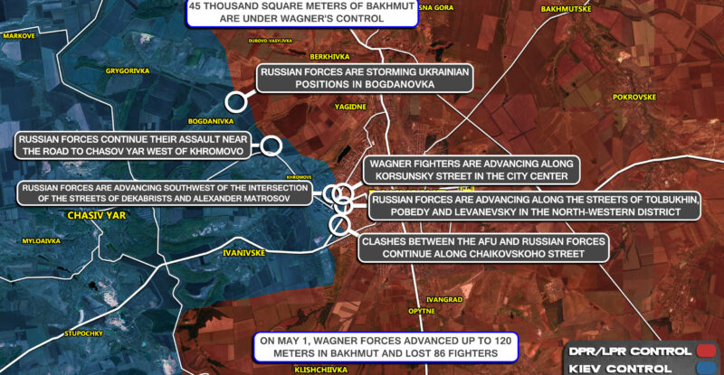 On May 1, Wagner forces advanced up to 120 meters in Bakhmut and lost 86 fighters; 45 thousand square meters…