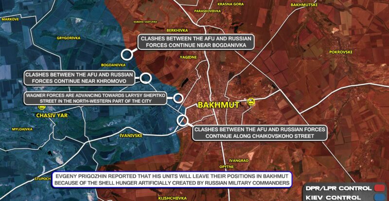Wagner forces are advancing towards Larysy Shepitko street in the north-western part of the city; Clashes between the AFU and…