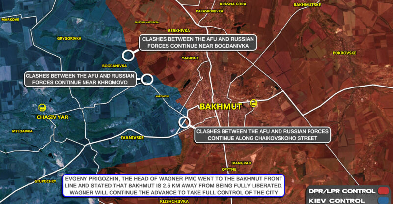 Evgeny Prigozhin, the head of Wagner PMC went to the Bakhmut front line and stated that Bakhmut is 2.5 km…