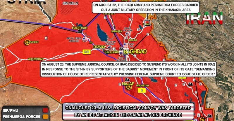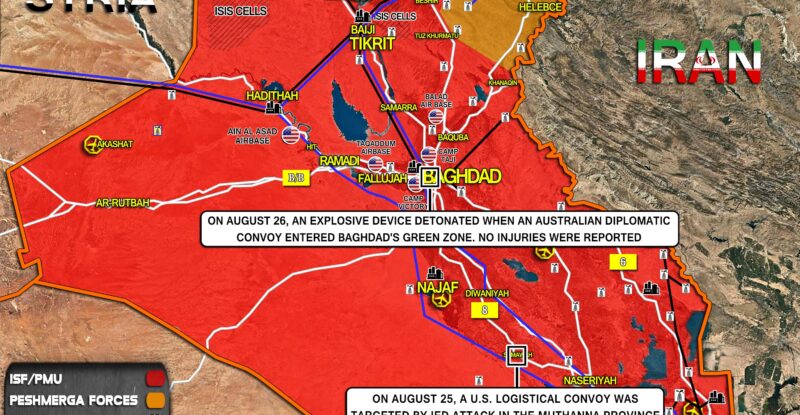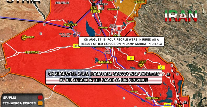 On August 23, a U.S. logistical convoy was targeted by an IED attack in the Salah al-Din province; On August…