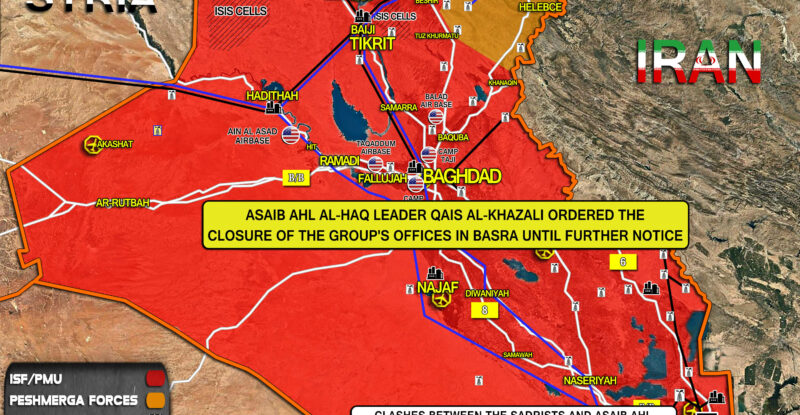 Asaib Ahl al-Haq leader Qais al-Khazali ordered the closure of the group’s offices in Basra until further notice; Clashes between…