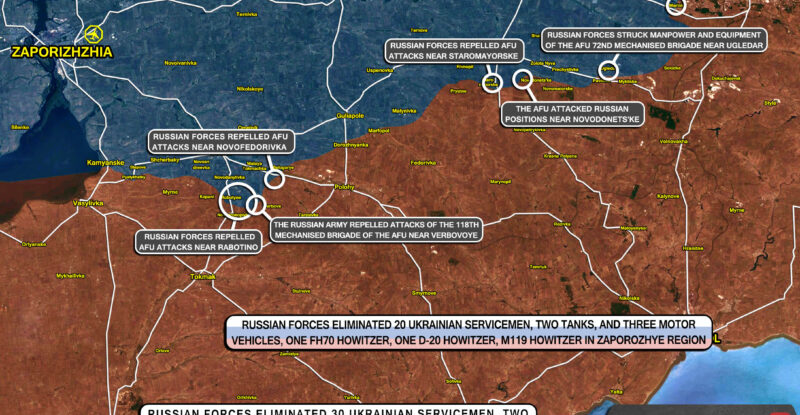 Russian forces repelled AFU attacks near Rabotino; Russian forces repelled AFU attacks near Novofedorivka; Russian forces repelled AFU attacks near…