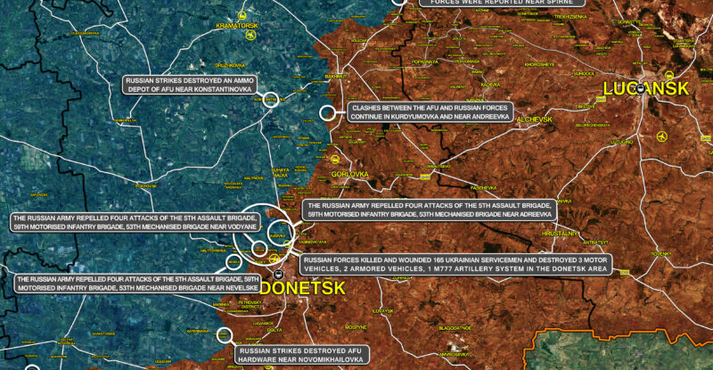 The Russian Army repelled four attacks of the 5th Assault Brigade, 59th Motorised Infantry Brigade, 53th Mechanised Brigade near Adreevka;…