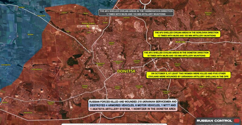 On October 5, at least two women were killed and five other civilians were wounded by Ukrainian artillery shelling in…