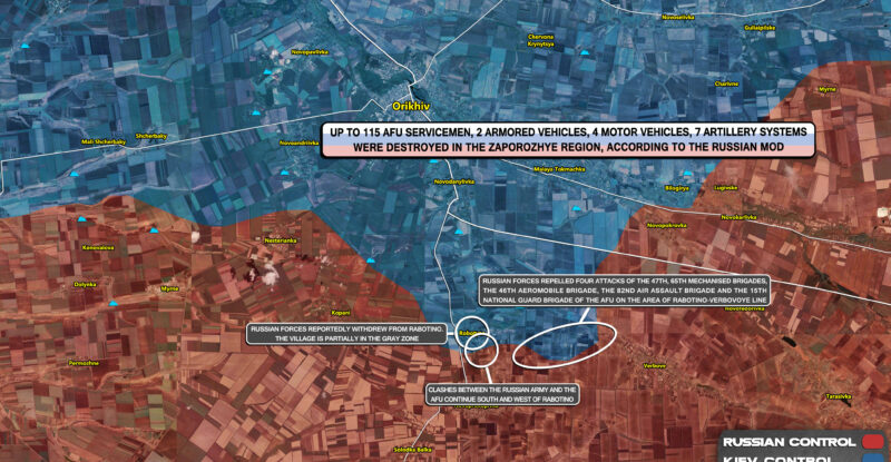Russian forces reportedly withdrew from Rabotino. The village is partially in the gray zone; Russian forces repelled four attacks of…