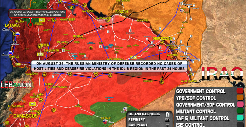 On August 25, the Russian Ministry of Defense recorded no cases of hostilities and ceasefire violations in the Idlib region…