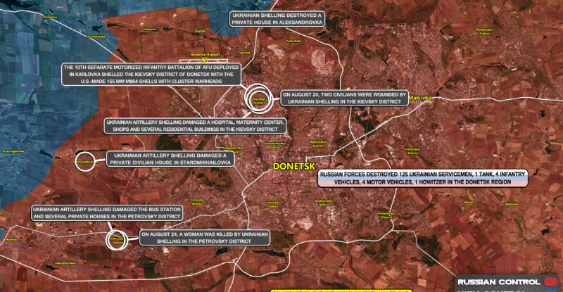 On August 24, a woman was killed by Ukrainian shelling in the Petrovsky district; On August 24, two civilians were…