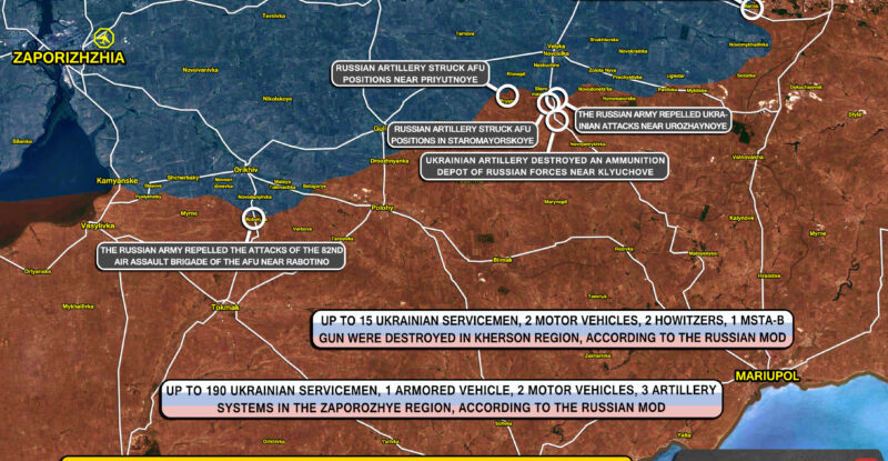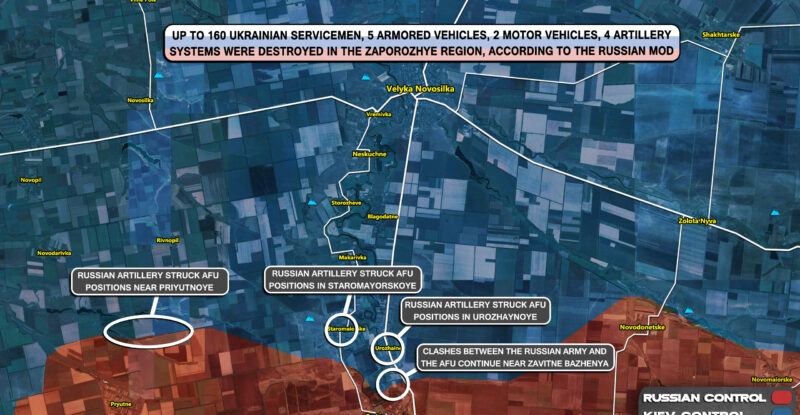 Clashes between the Russian Army and the AFU continue near Zavitne Bazhenya; Russian artillery struck AFU positions in Staromayorskoye; Russian…