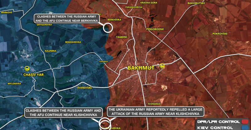 The Ukrainian army reportedly repelled a large attack of the Russian Army near Klishchiivka; Clashes between the Russian Army and…