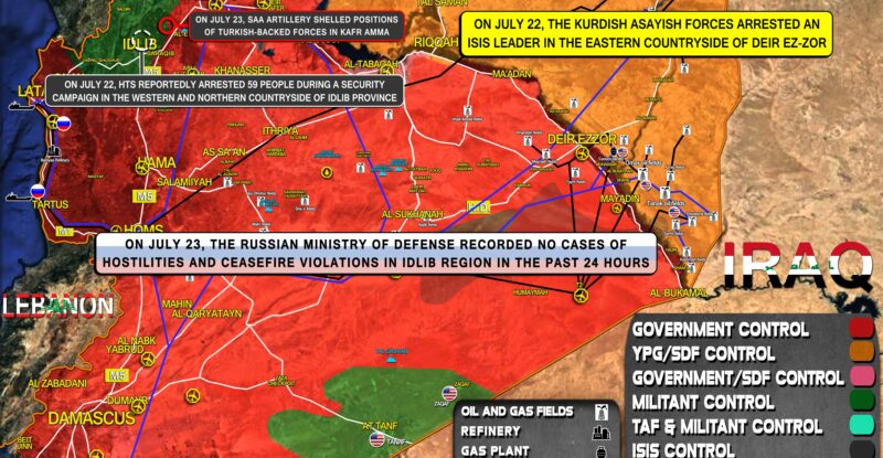 On July 23, the Russian Ministry of Defense recorded no cases of hostilities and ceasefire violations in Idlib region in…