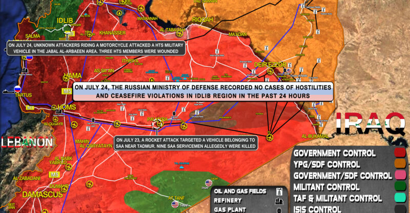On July 24, the Russian Ministry of Defense recorded no cases of hostilities and ceasefire violations in Idlib region in…