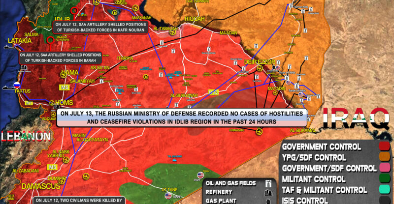 On July 13, the Russian Ministry of Defense recorded no cases of hostilities and ceasefire violations in Idlib region in…