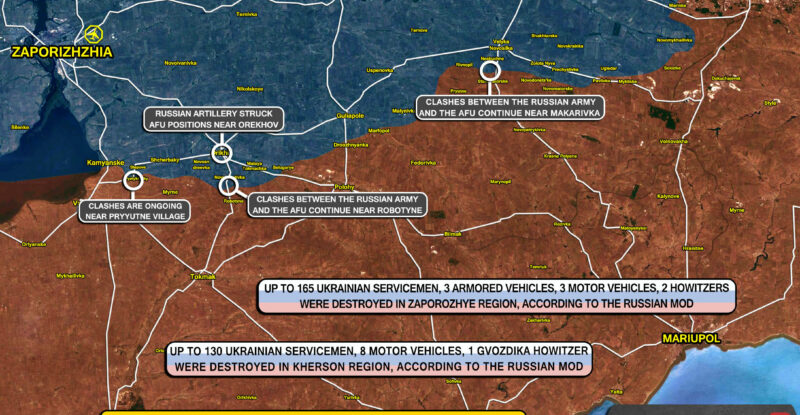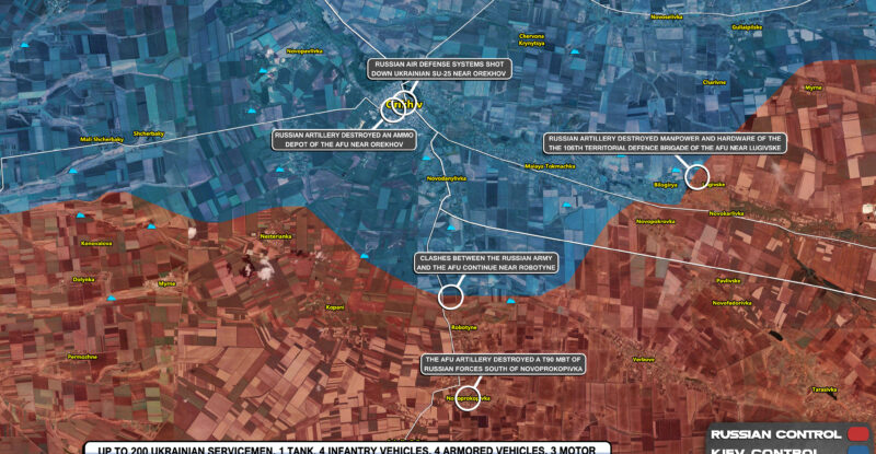Clashes are ongoing near Pryyutne village; Russian artillery struck AFU positions near Orekhov; Clashes between the Russian Army and the…