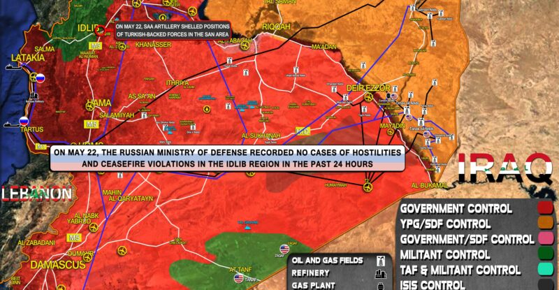 On May 22, the Russian Ministry of Defense recorded no cases of hostilities and ceasefire violations in the Idlib region…