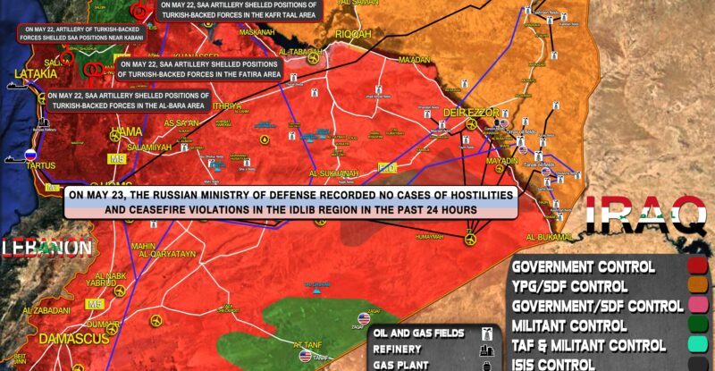 On May 23, the Russian Ministry of Defense recorded no cases of hostilities and ceasefire violations in the Idlib region…