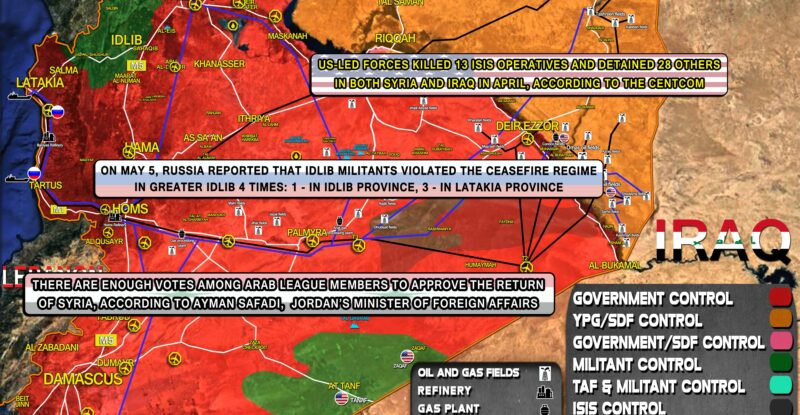 On May 5, Russia reported that Idlib militants violated the ceasefire regime in Greater Idlib 4 times: 1 – in…