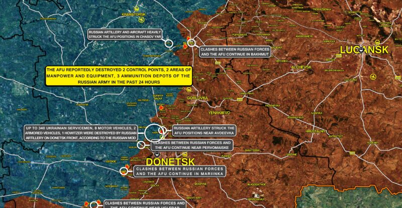 Russian artillery and aircraft heavily struck the AFU positions in Chasov Yar; Russian artillery struck the AFU positions near Avdeevka;…