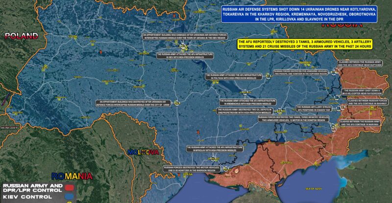 The Russian Army shot down Ukrainian Su-24 warplane near Lipovka; The Russian Army destroyed Ukrainian P-18 and ST-68 radars near…