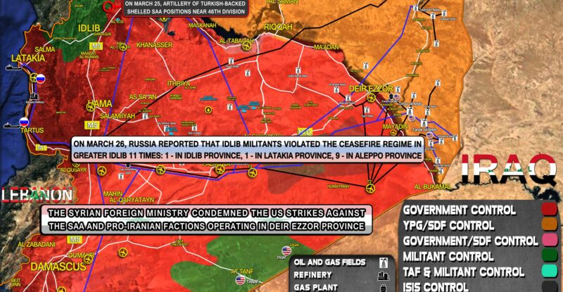 On March 26, Russia reported that Idlib militants violated the ceasefire regime in Greater Idlib 11 times: 1 – in…