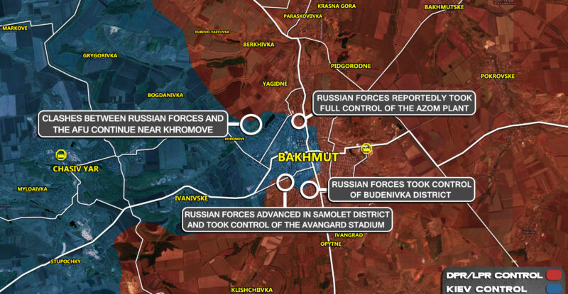 Russian forces reportedly took full control of the AZOM plant; Russian forces took control of Budenivka district; Russian forces advanced…