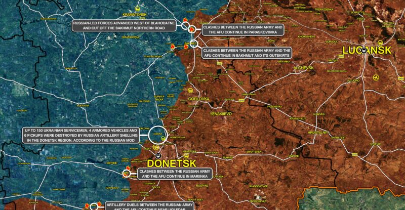 Russian-led forces advanced west of Blahodatne and cut off the Bakhmut northern road; Clashes between the Russian Army and the…