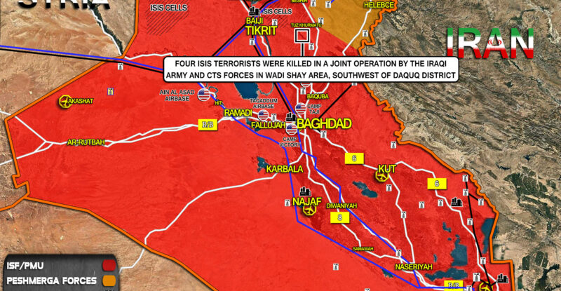 Four ISIS terrorists were killed in a joint operation by the Iraqi Army and CTS forces in Wadi Shay area,…