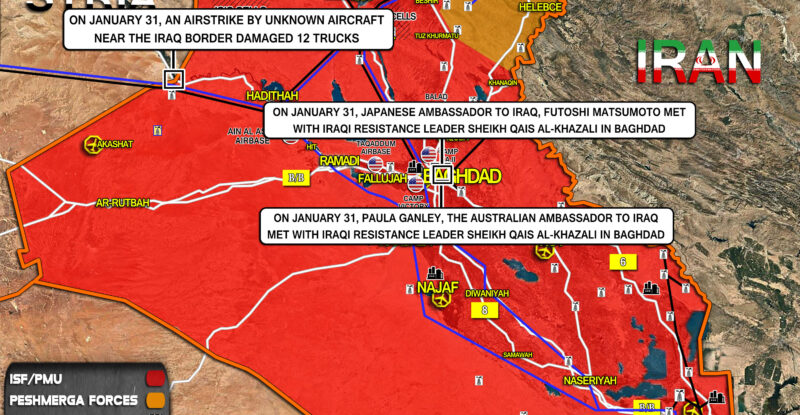 On January 31, an airstrike by unknown aircraft on the outskirts of the Syrian border city of Al Bukamal damaged…