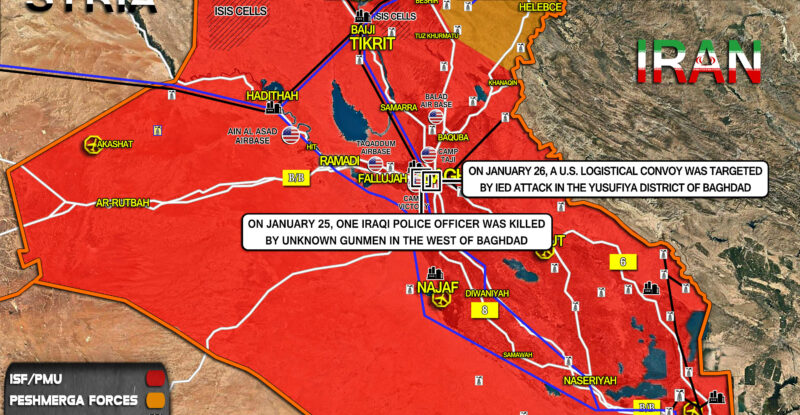 On January 26, a U.S. logistical convoy was targeted by IED attack in the Yusufiya district of Baghdad; On January…