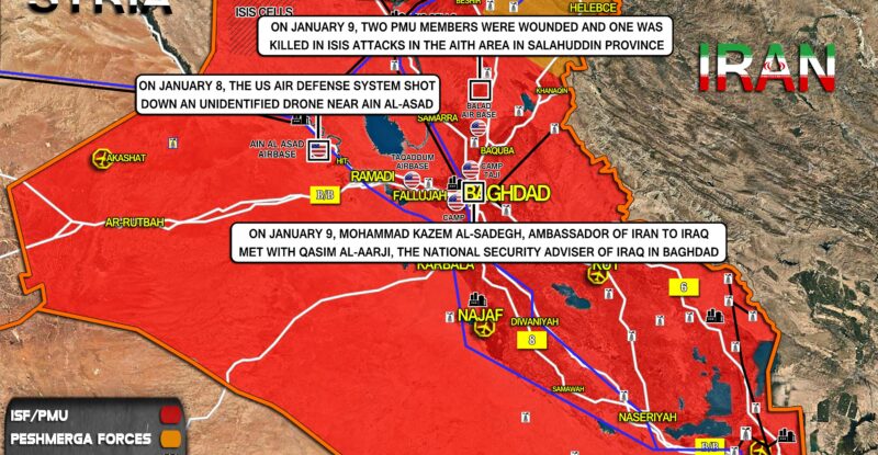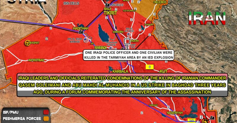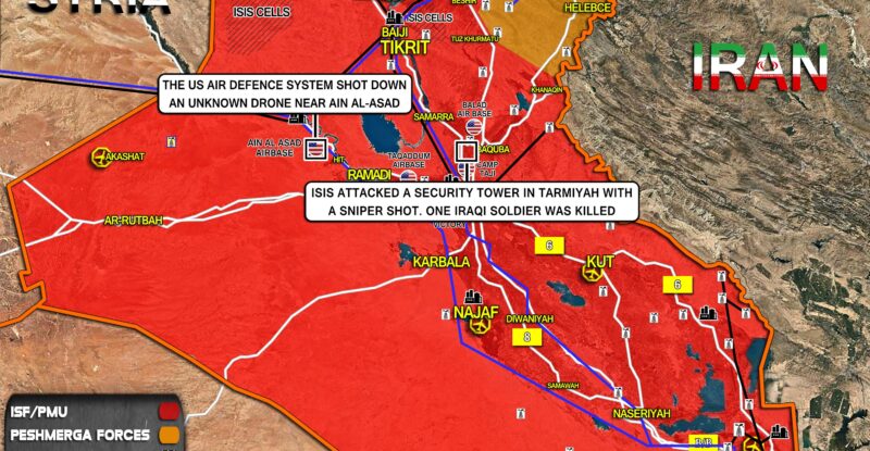ISIS attacked a security tower in Tarmiyah with a sniper shot. One Iraqi soldier was killed; The US air defence…