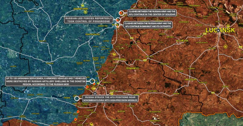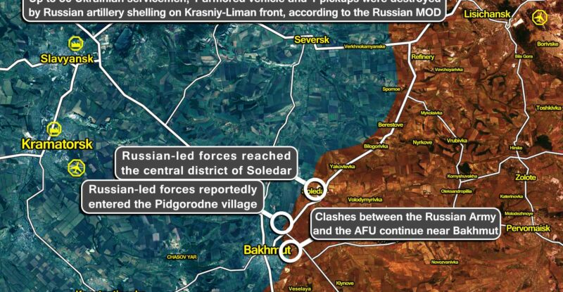 Russian-led forces reportedly entered the Pidgorodne village; Russian-led forces reached the central district of Soledar; Clashes between the Russian Army…