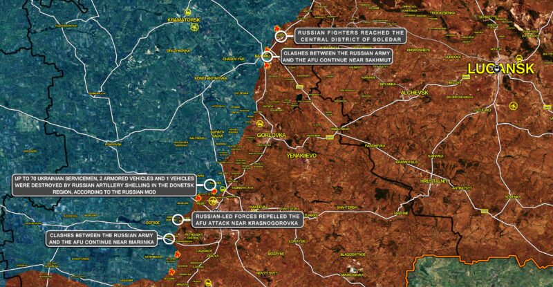 Russian-led forces repelled the AFU attack near Krasnogorovka; Russian-led forces repelled the AFU attack near Sinkovka; Clashes between the Russian…