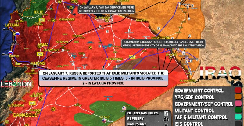 On January 7, Russia reported that Idlib militants violated the ceasefire regime in Greater Idlib 5 times: 3 – in…