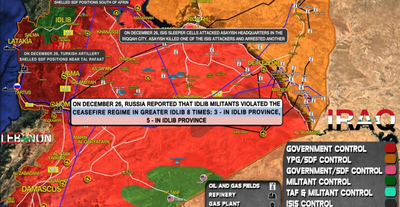 On December 26, Russia reported that Idlib militants violated the ceasefire regime in Greater Idlib 8 times: 3 – in…