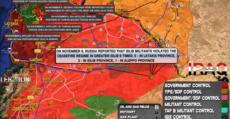 On November 6, Russia reported that Idlib militants violated the ceasefire regime in Greater Idlib 9 times: 5 – in…