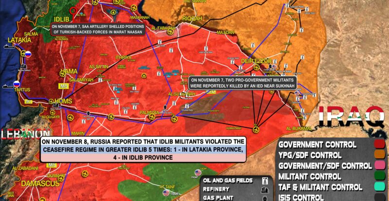 On November 8, Russia reported that Idlib militants violated the ceasefire regime in Greater Idlib 5 times: 1 – in…