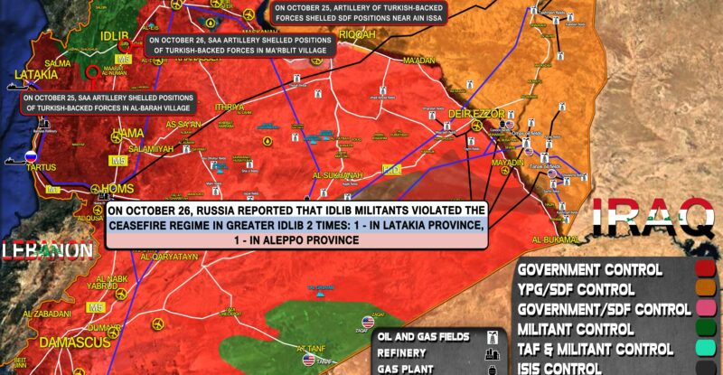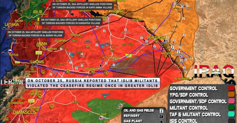 On October 25, Russia reported that Idlib militants violated the ceasefire regime once in Greater Idlib; On October 25, SAA…