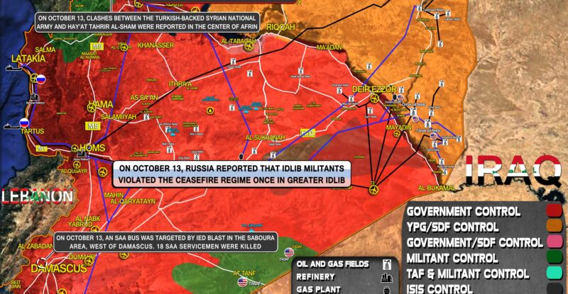 On October 13, Russia reported that Idlib militants violated the ceasefire regime once in Greater Idlib; On October 13, clashes…