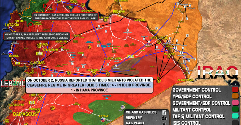 On October 2, Russia reported that Idlib militants violated the ceasefire regime in Greater Idlib 3 times: 4 – in…