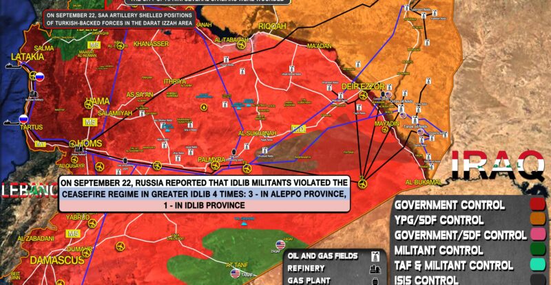 On September 22, Russia reported that Idlib militants violated the ceasefire regime in Greater Idlib 4 times: 3 – in…