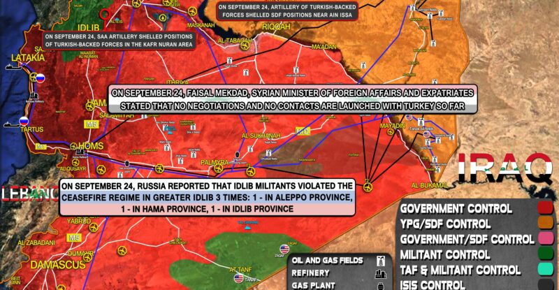 On September 24, Russia reported that Idlib militants violated the ceasefire regime in Greater Idlib 3 times: 1 –…