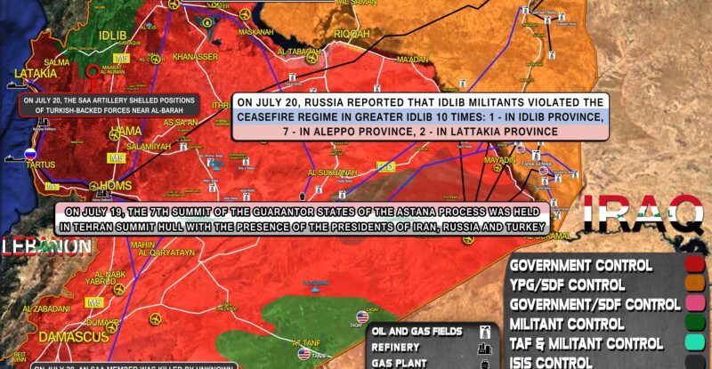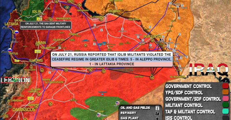 On July 21, Russia reported that Idlib militants violated the ceasefire regime in Greater Idlib 6 times: 5 – in…