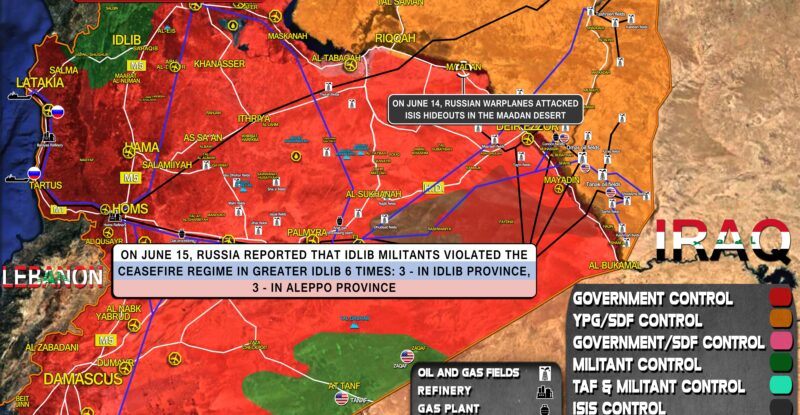 On June 15, Russia reported that Idlib militants violated the ceasefire regime in Greater Idlib 6 times: 3 – in…